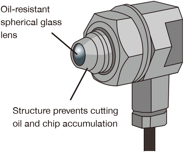 The detection area features a structure that prevents the accumulation of cutting oil and chips, as well as an oil-resistant spherical glass lens.