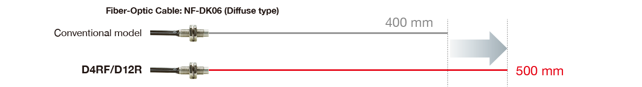 ●The sensing distances for diffuse reflective Fiber-Optic Cables are reference values measured using a 500 × 500 mm white paper.