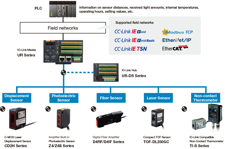 Software is available to check measurement values, received light waveform and log measured values on a PC using our IO-Link Master (UR-E□16DT).