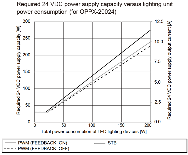 Required 24 VDC power supply capacity for power consumption of lighting unit