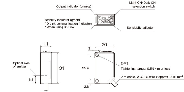 - IO-Link support: Connectable to various field networks via IO-Link Master