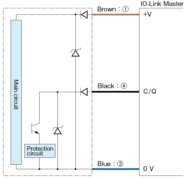 * When using NPN type for an IO-Link connection, use OPTEX FA’s IO-Link Master UR Series or IO-Link Master with sink support.