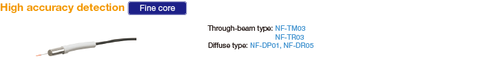 The NF-DP01 diffuse type features a fine core with a diameter of just 0.125 mm. In addition to meeting the needs of small object detection, a sleeve type is also available for easy fiber alignment.