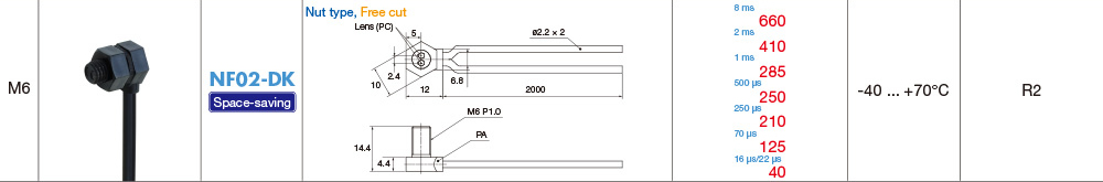 Fiber-Optic CablesNF Series Flexible type (R1 mm, R2 mm)