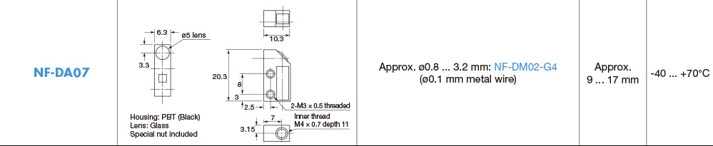 The values for the smallest detectable object are typical values when set for the best to detect small objects on the Fiber-Optic Sensors side.
