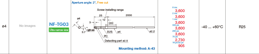 - Side angle light beam provides optimal detection in narrow places (Side view type)